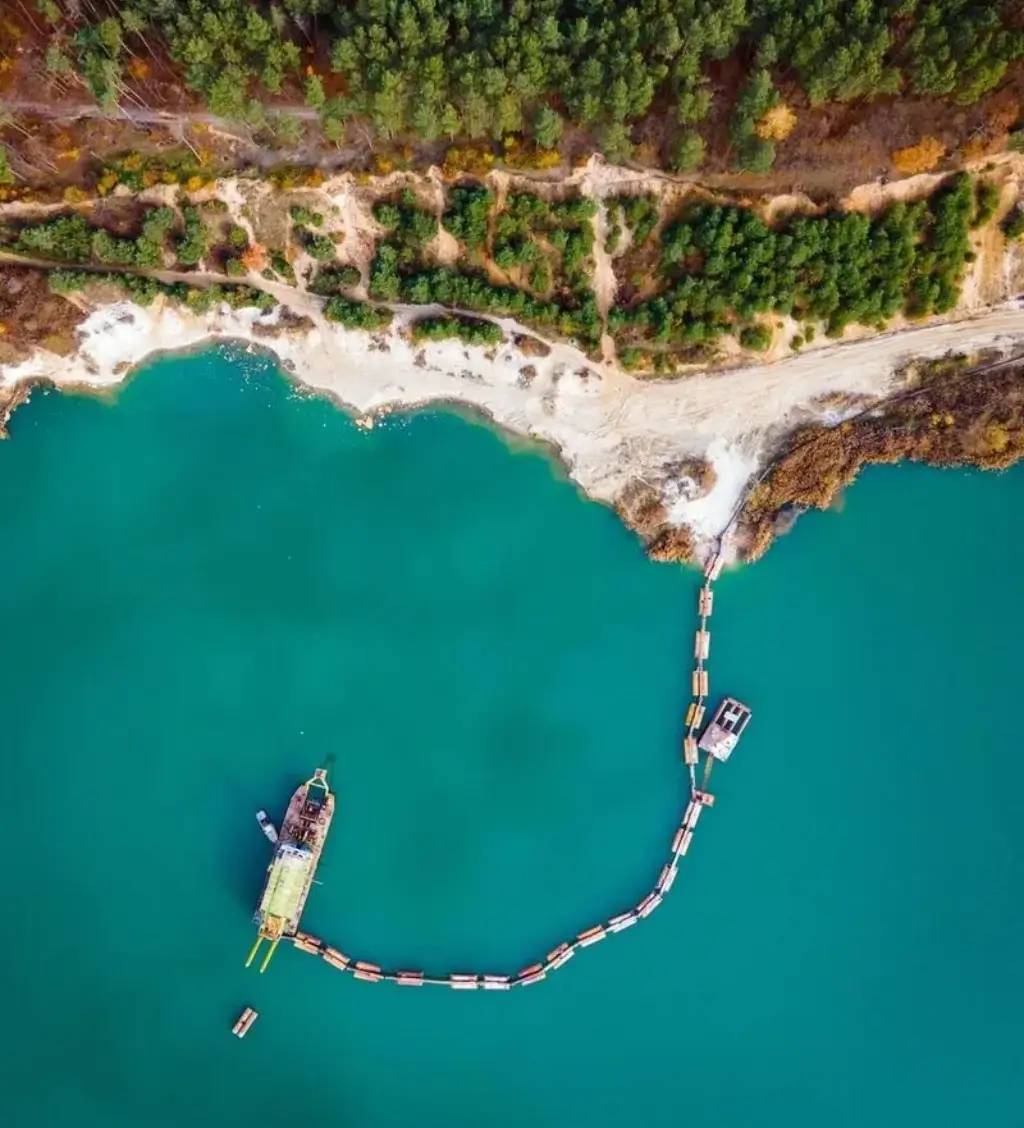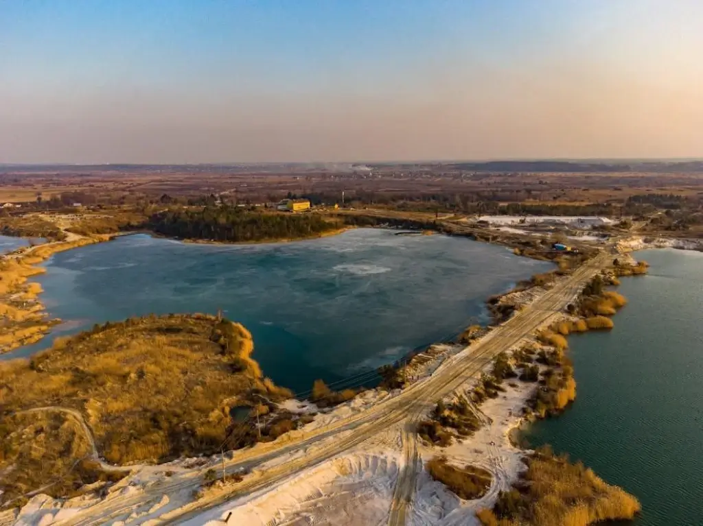 - Глибина кар’єру сягає двадцяти метрів, а скелі вздовж берега часто осипаються.